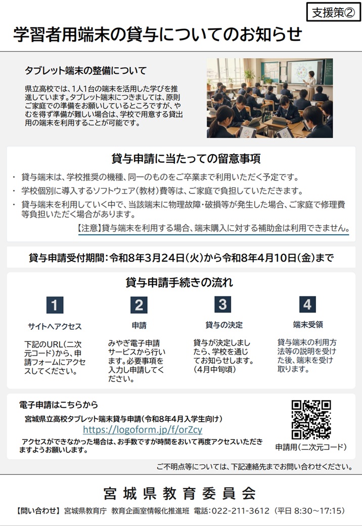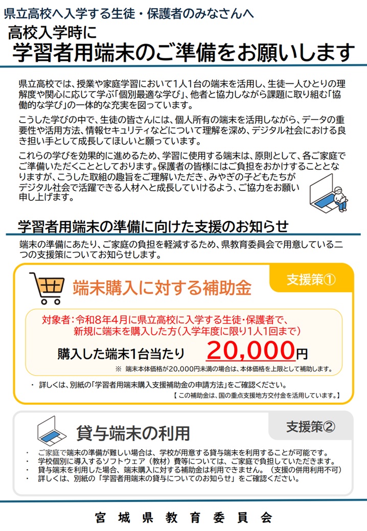 学習者用端末(iPad)準備・補助金申請方法・貸与についてのお知らせ
